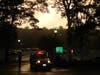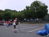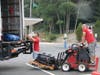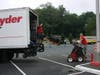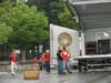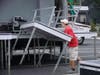 The concert was called off as the storm clouds rolled in. Event staff quickly loaded trucks, packed gear, and closed the portable bandstand just as it started to pour.