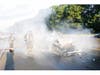 The fire shut down the eastbound lane of the parkway for 2 hours.