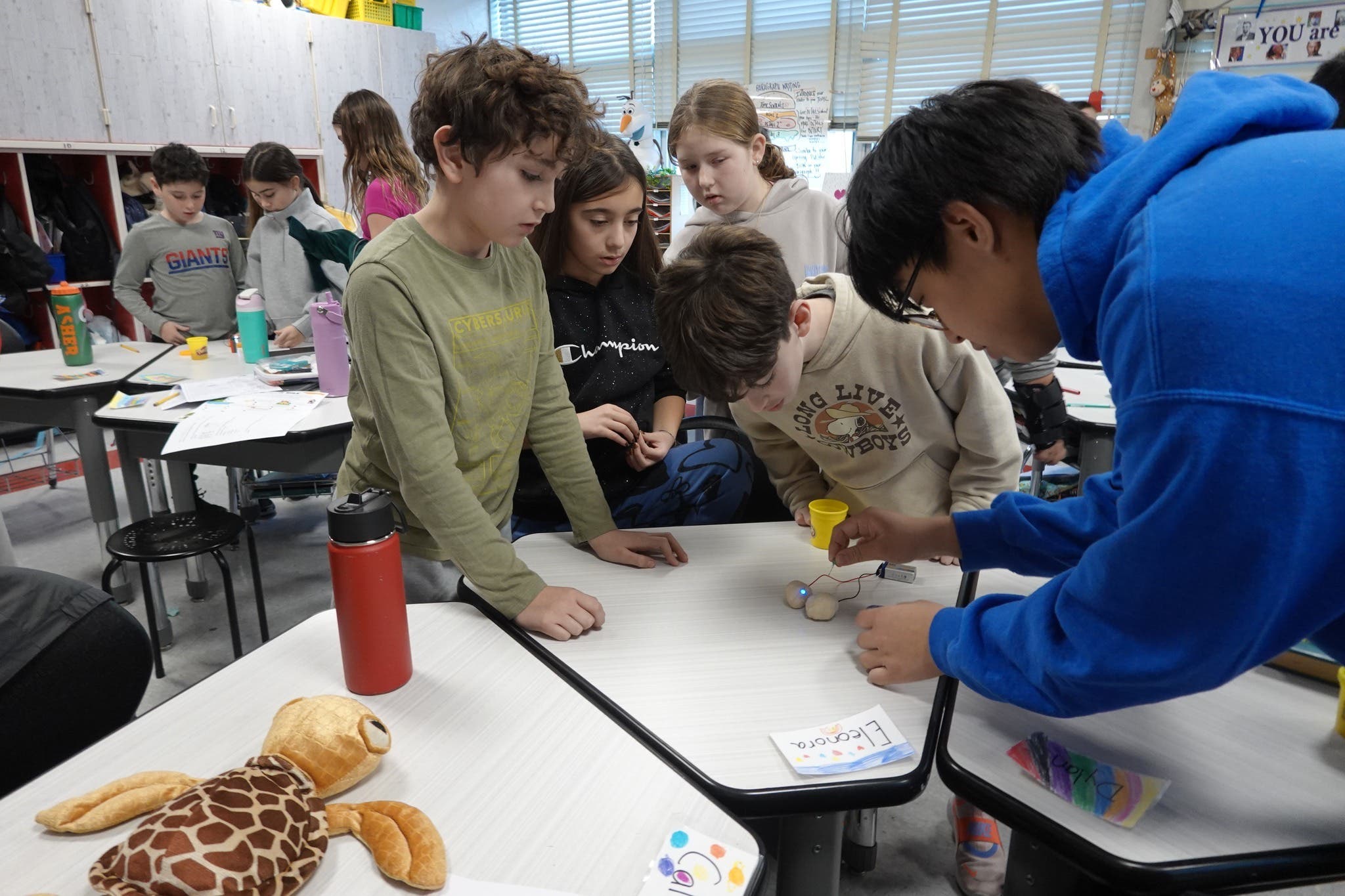 Elementary school students learned about STEM-related projects, including electrical circuits.
