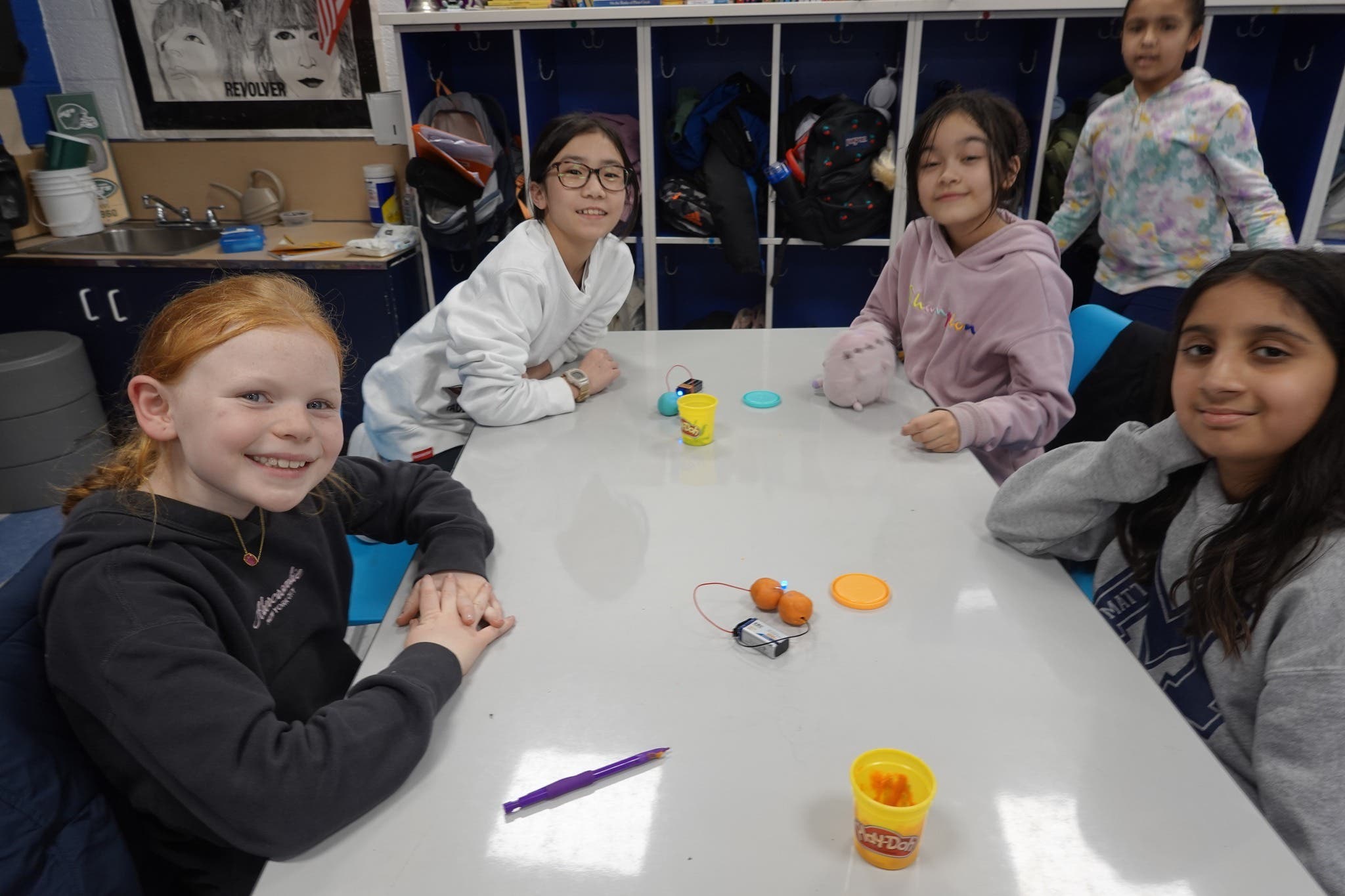 High schoolers on Plainview-Old Bethpage John F. Kennedy High School's robotics team, POBots, brought their STEM skills to the elementary school. They mentored the young students, providing them with a hands-on lesson in electrical circuits using everyday materials, like Play-Doh, batteries, wires, and lightbulbs.