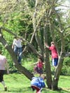 Sponsored by the Religious School and supported by the Temple's Brotherhood, everyone was treated to a wonderful breakfast of bagels, cream cheese, cookies and coffee. The children had fun playing games outside.