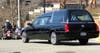 The triangular-folded Stars and Stripes were displayed in the rear of the hearse as it made its way to the cemetery Monday under police escort.