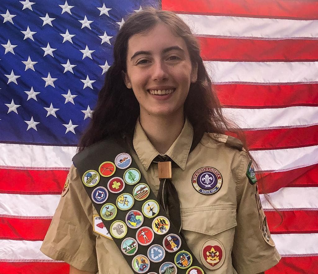 Dempsey is also a founding member. She joined the troop in August 2019 at the urging of three of its members. She also followed in the footsteps of her older brother. In an incredibly tight timeline she achieved the rank of Eagle in 2 years and 9 months — completing 21 merit badges and an Eagle project.