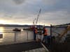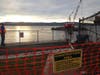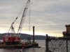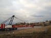 The dredging operation, or replacement of some 1,000 yards of potentially contaminated soil from the old General Motors yard, has not begun yet. What the very dramatic looking cranes are doing, said Giaccio, are doing the preliminary protective work: installing posts, netting and sheathing.