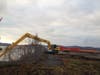 The tall cranes will come into use again in the end of the work to lift and remove the metal sheeting. Until then, the cranes will rest as the scooping operation continues through the holidays.