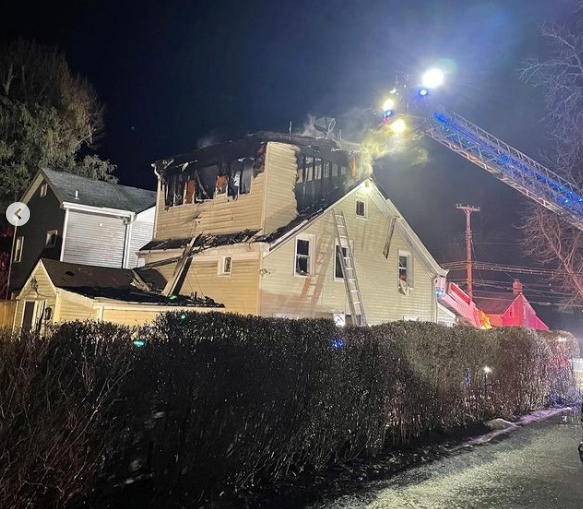 The alarm came in at 1:02 a.m. for a reported structure fire in the 100 block of Bedford Road. "I got there at 1:06 and the room where the fire started, on the third floor, was fully involved," Chief Madison Martineau told Patch.