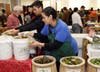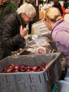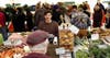 This morning, an eager crowd picked favorite foods including fruits, vegetables, meats, fish, pickles, cakes and other treats.
