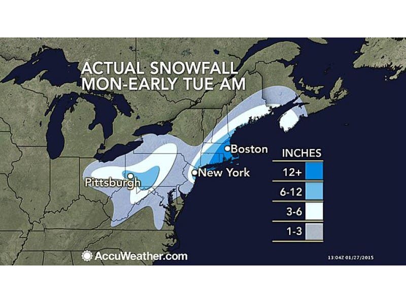Forecasts had called for up to 30 inches of snow in parts of the Hudson Valley Monday and Tuesday.