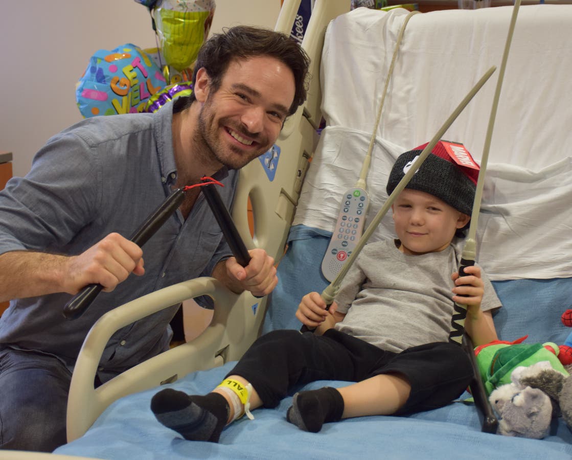 Actor Charlie Cox toured the hospital meeting patients and parents, and talked with students and staff at the special school district.