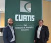 Nick Marwell (left) and Stuart Marwell (right) stand in front of the Curtis dedication to company founder Edward M. Marwell.