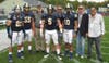 The group represented former athletes from the late 1960's through the mid-1980's, including former football coach Walter "Skip" Mongon. Prior to the game, Malcolm Sagherian '75, MBA '83, was interviewed by WFAS Radio, while 2012 Hall of Fame inductee Dennis Carpenter '75, Dennis Holland '80, Donald "Juice" Palombo '70, and Geoff Robillard '78 served as honorary captains for the official coin toss on field. At the end of the day, Holland presented Mongon with a game ball signed by all of the football players in attendance.