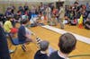 The 70 cars raced down a six-lane track in the gymnasium on March 18 in groups based on the Cub Scout ranks.
