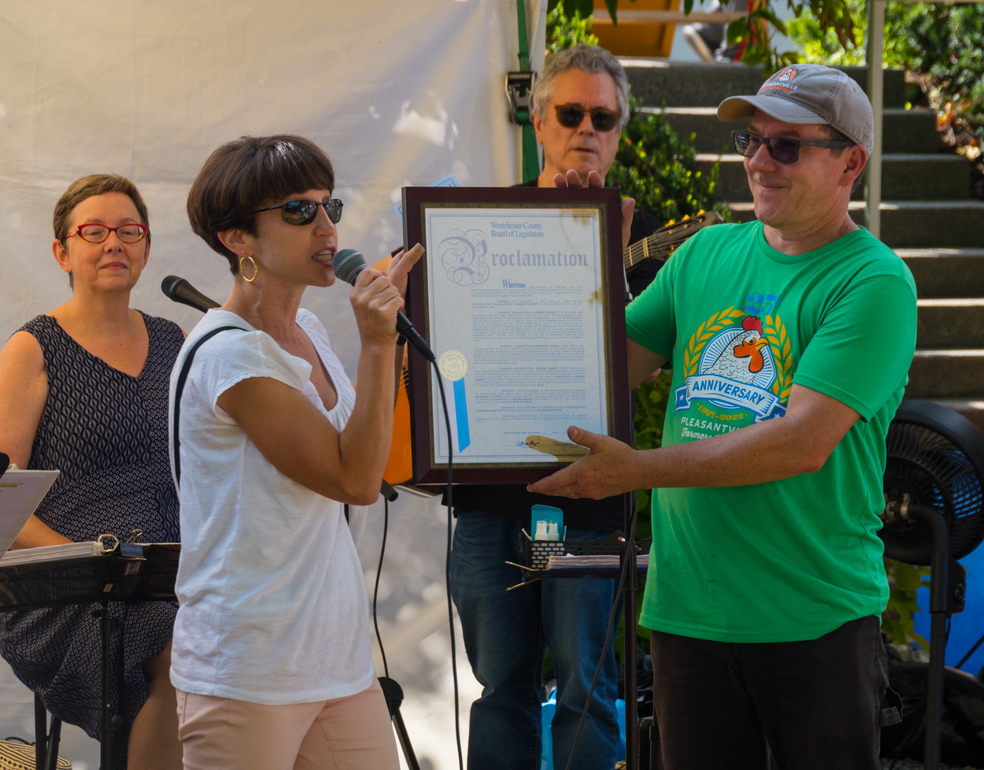 Legislator Margaret Cunzio presented a proclamation declaring Sept. 3 "Pleasantville Farmers Market Day" in Westchester County.