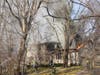 One Pleasantville ladder is up by the home, where flames can be seen shooting from the roof in multiple locations. A ground crew is hosing the flames from in front of the house.