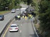 A grey BMW sedan could be seen just north of the Route 9A Pleasantville Road accident after noon.
