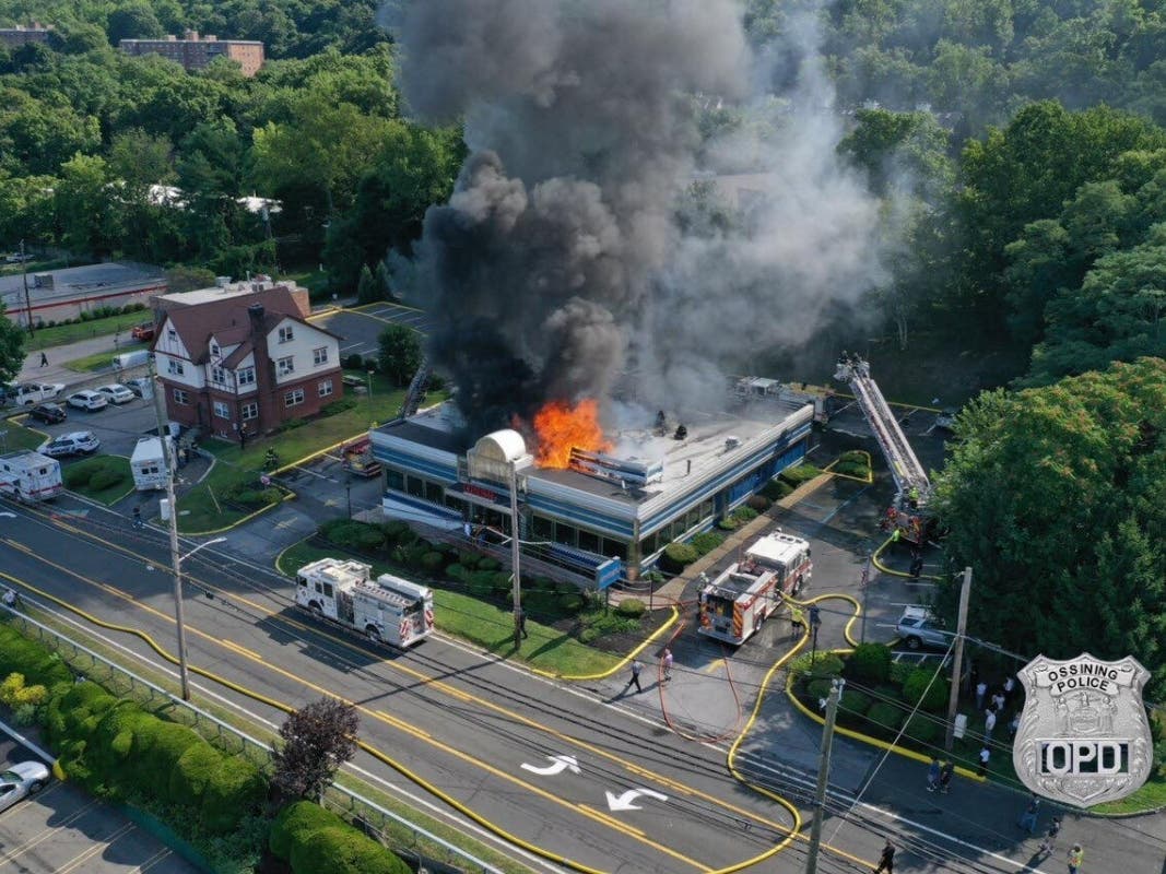 The intense fire blew out the windows of the landmark diner while it was burning in Briarcliff Manor. @lohud pic.twitter.com/aJP4U58IsW