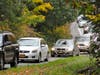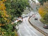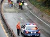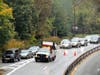 Northbound Saw Mill River Parkway traffic continues to be funneled into Pleasantville as Westchester County Police and New York State Department of Transportation workers clear the scene of an overpass accident.