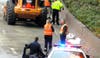 There is also a New York State Department of Environmental Conservation spill response vehicle at the scene.