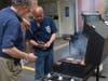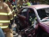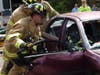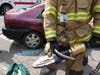 During the demonstration, Deputy Chief Tom Farrington explained how emergency workers reach an injured person inside a vehicle and safely remove him using various tools, including the jaws of life. Farrington said the jaws use 20,000 pounds of force to pull open damaged vehicles after accidents.