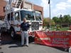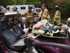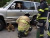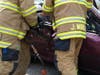 Onlookers applauded when emergency personnel were able to "rescue" a "patient" from the vehicle and safely transport him onto a stretcher and into an ambulance.
