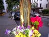 Here, there are many prayer candles on the dirt square surrounding the tree and folks are gathering to talk and take photos. Some seem to be just hanging out, almost guarding their new sacred spot.