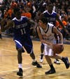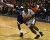 The teams traded baskets in the second half matching three-pointers and battling hard for inside shots. But the Rams began to take advantage of the Quakers' turnovers and opened up an eight -point lead late in the fourth quarter.