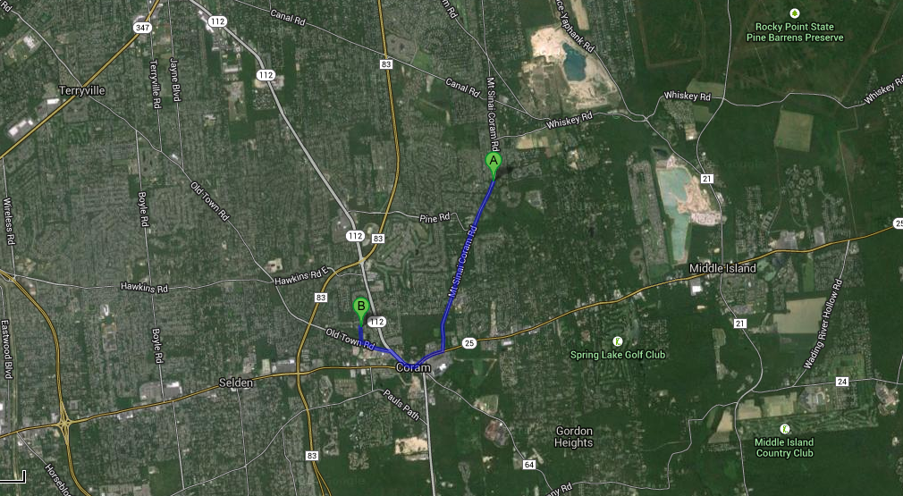 Police said officers responded to a call near the intersection of Coram-Swezeytown Road and Mount Sinai-Coram Road at about 9:20 a.m.
