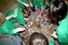Once again, the lunchroom waste from that day was poured onto a tarp while parents and children volunteers did the dirty job of shifting through it. It turned out that this time the kids only produced three barrels of trash compared to four barrels on Oct. 27.