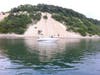 The cove is surrounded on all sides by enormous dunes offering quite a bit of protection. The story is that a mining company dredged sand in the area out of the harbor landscape in the early 20th century, leaving behind this little bay perfect for modern boaters to enjoy.