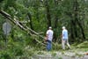 Mike and Heather Esnes came down to survey the harbor on Sunday and check out their boat. The Esneses usually keep their boat on a mooring but for the storm they had Ralph's Marina haul it out.