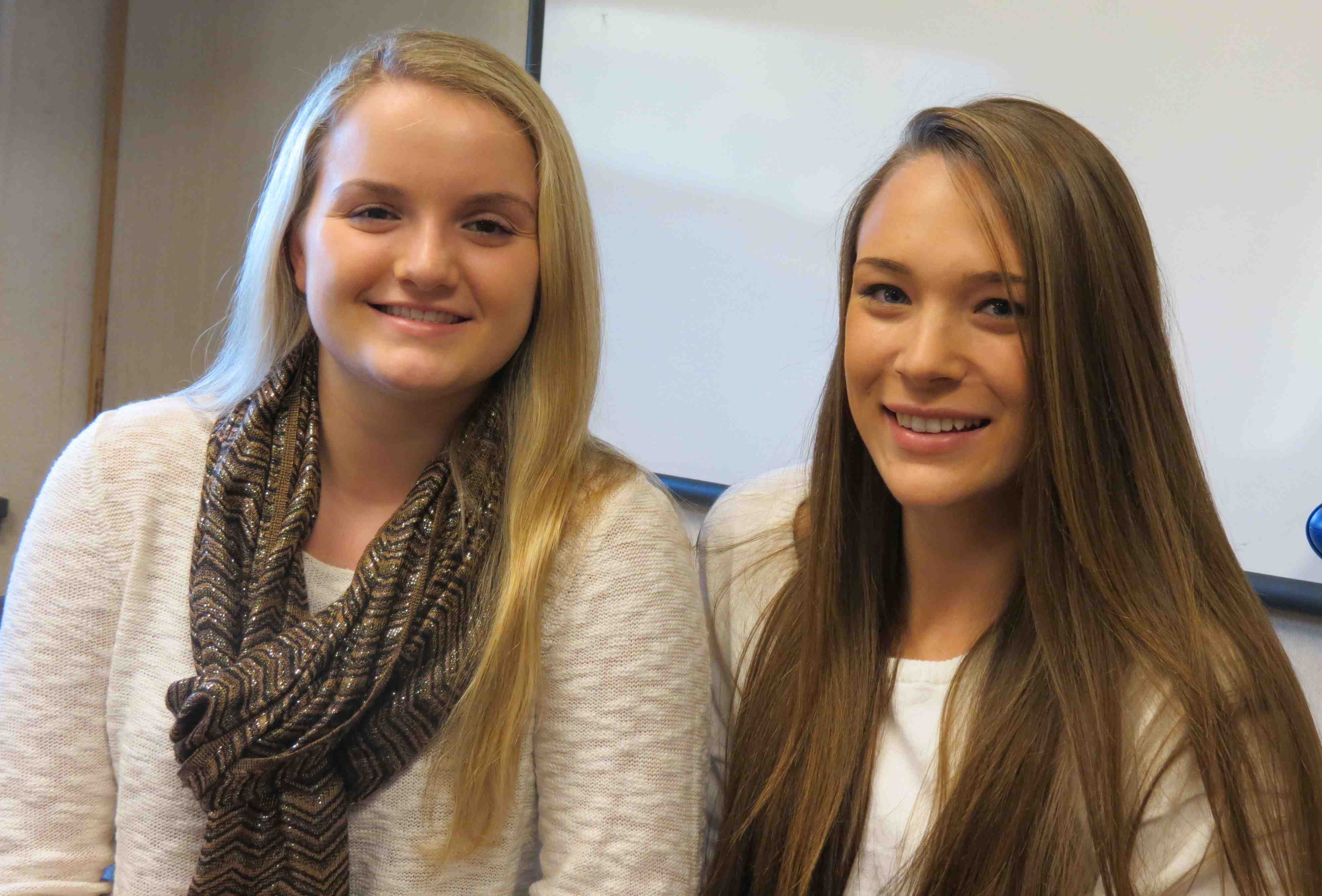 Photo courtesy of the Port Jefferson School District: Port Jefferson volleyball players Emily Rubenbauer and Ally Dombroski raised more than $1,000 for breast cancer research through a volleyball tournament at their school.
