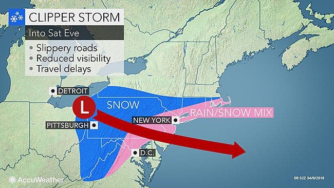 LOW PRESSURE WILL TRACK TO THE DELMARVA COAST THIS MORNING...AND THEN TRACK SOUTH OF LONG ISLAND THIS AFTERNOON AS IT GRADUALLY INTENSIFIES. LIGHT RAIN IS EXPECTED TO DEVELOP ACROSS THE REGION LATE THIS MORNING INTO EARLY AFTERNOON. THIS RAIN SHOULD BEGIN MIXING WITH SNOW THIS AFTERNOON AND CONTINUE INTO THIS EVENING. IF PRECIPITATION REMAINS LIGHT...LITTLE TO NO SNOW ACCUMULATION WOULD BE EXPECTED. THERE IS THOUGH...POTENTIAL FOR A MODERATE TO HEAVY PRECIPITATION BAND TO WORK INTO THE REGION FROM THE SOUTH THIS AFTERNOON BEFORE PULLING EAST THIS EVENING. IF THIS OCCURS...THE RAIN AND SNOW MIX WOULD QUICKLY CHANGE TO A MODERATE TO HEAVY SNOW WITH A FEW INCHES OF SNOW ACCUMULATION POSSIBLE. THIS IS A LOW PROBABILITY AT THIS TIME...BUT IF TRAVELING THIS AFTERNOON INTO EVENING BE PREPARED FOR THIS POTENTIAL AND THE ACCOMPANYING SIGNIFICANTLY REDUCED VISIBILITIES AND HAZARDOUS ROAD CONDITIONS.