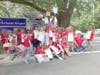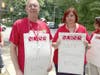 Union members stage informational picketing outside St Charles Hospital on Wednesday.