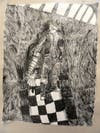 Katie Ambrozy did a drawing of a sunset in colored pencil on paper and Eric Zimmerman did a black and white piece using a crow quill pen and India ink on paper.