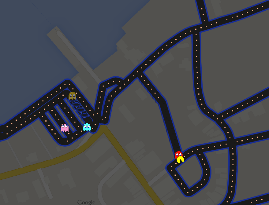 Just search for an area in Port Jefferson on Google Maps (or just click here), then click the Pac-Man logo in the bottom left corner and stand to be amazed as the streets turn into a Pac-Man game. You can move the map to different parts of town and play the arcade favorite on whichever local roads you choose.
