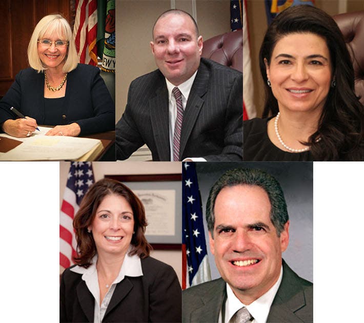 Photo: Top (l-r): supervisor Judi Bosworth, council member Peter Zuckerman, council member Anna Kaplan. Bottom (l-r) council member Dina De Giorgio and receiver of taxes Charles Berman