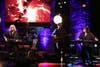 The final half of the performance began with the much awaited performance of “The Alice’s Restaurant Massacree,” telling the true story of Arlo’s Thanksgiving arrest for littering, and how it eventually disqualified him from the Vietnam draft. Arlo only performs “Alice’s Restaurant” on ten-year anniversaries, so we are very fortunate to have been able to witness it live. It was worth the ten-year wait. Scenes from the movie of the same name played on a screen behind the performers.
