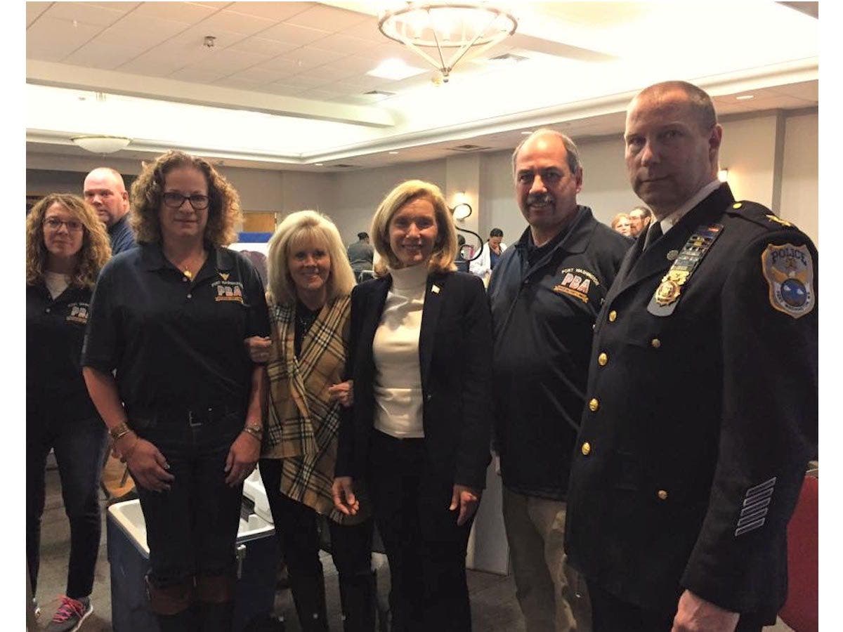 Image via Office of Senator Elaine Phillips: Senator Phillips (center) is pictured with (l-r) retired Port Washington Police Officer Tracy DioGuardi, Port Washington Police Commissioner Angela Mullins, Port Washington Police Deputy Chief Robert DelMuro and Port Washington Police Assistant Chief Jeffrey Morris.