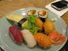 If we weren't waiting for a table for a few minutes, we might have missed something very important — the small cardboard sign by the entrance that said "Lunch Special - $10 - sushi assortment." The special wasn't mentioned in the menus that we were handed as we were seated, or by the waitress who served us. After we were seated, the waitress brought warm damp washcloths for us to freshen up with — a nice touch!