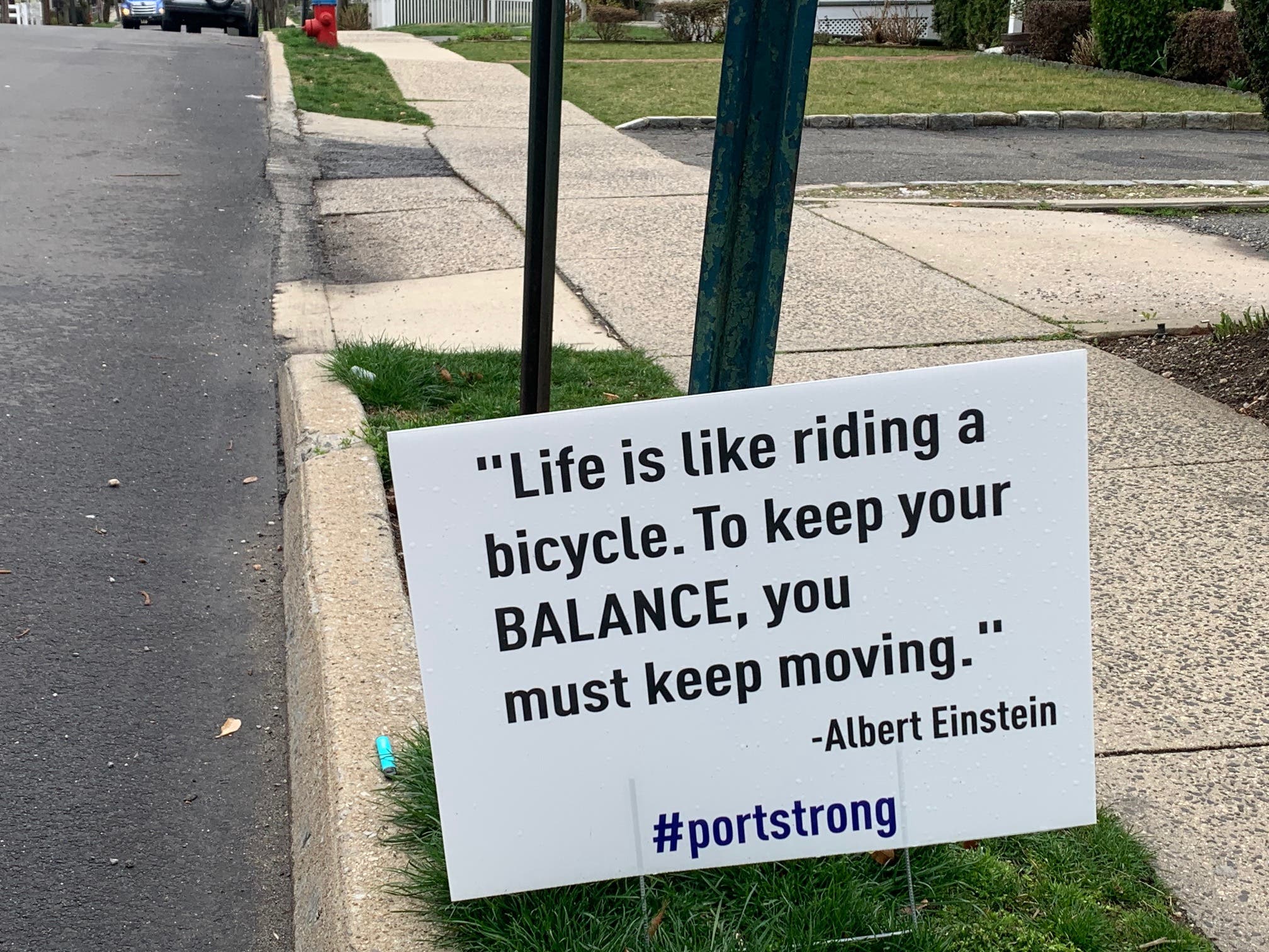 PORT WASHINGTON, NY—As the new coronavirus continues negatively impacting Long Island communities, one Port Washington business hopes to counteract that with some positivity. Throughout town, the owners of Chief Graphix have been putting up large signs which contain inspirational messages. According to the owners, JB and Abby Meyer, the signs are meant to offer hope to anyone who may be having a hard time coping with the impacts of the virus.