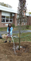 In all thirteen native plants were added to the Guggenheim school property. Plantings included a flowering Dogwood tree, a Serviceberry tree, Winterberry bushes and two types of native Viburnums, Bayberry and Winterberry. The North Shore Audubon Society and PWGreen support the planting of native plants to help wildlife survive and to conserve water. In addition to education in the schools, these environmental organizations also encourage homeowners to plant native plants in their yards.