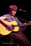 The opening act was Carsie Blanton, a young, Philly-based singer-songwriter who resembled a slightly grown-up version of Annie (of comic strip fame), except with a head of tight dark curls rather than red. She proved to be quite a surprise. Her singing voice was high and little-girlish, but with a sultry edge – startling when she first began. Her vocal sound was very unusual. Blanton played the guitar and was accompanied by Joe Plowman on stand-up bass. Blanton’s songs defy categorization – she can’t quite be defined as folk, or rock, or pop, or cabaret… but perhaps some odd combination of all of the above. Her lyrics were witty and clever (“loving you is like kissing a chicken…"), and her delivery was perfect. I’ll admit that it was somewhat disconcerting to hear that little girl voice singing racy lyrics like “take off all your clothes,” but she could certainly pull off both the comedy aspect, and the sexiness. There was something about her that reminded me of a 1930s musical film star.