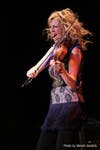 MacMaster may have sung and danced her way into Landmark record books by taking the longest on-stage drink of water – and by dancing atop an already-occupied piano bench.Tossing her curly blonde mane at the audience, she accepted a standing ovation, then broadly hinted that she’d return for more. Return with an encore she did, fiddling her wireless way down Landmark aisles, ultimately bringing three young girls up to dance while she played on. Here’s it’s worth mentioning her instrument’s setup. Using a microphone dangled just above the bridge of the violin and attached to a wireless system, this device allowed MacMaster to stay with her violin’s natural sound but to stride across the stage – and beyond – at will.