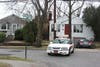Nassau County Police have been taking shifts blocking off the road at Orchard Beach Boulevard near the corner of Linwood Road South and on the corner of Linwood and Kirkwood Road since the night of the storm. Telephone wires remain sprawled across the road and through yards and many residents have said the smell of burnt wood lingers in the air.