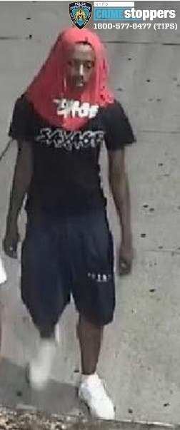 Police said the man they are looking for is approximately 18 to 20 years old, stands about 5'8" tall, weighs about 150 pounds and was last seen wearing a black t-shirt, dark colored shorts, white sneakers and a red t-shirt over his head.