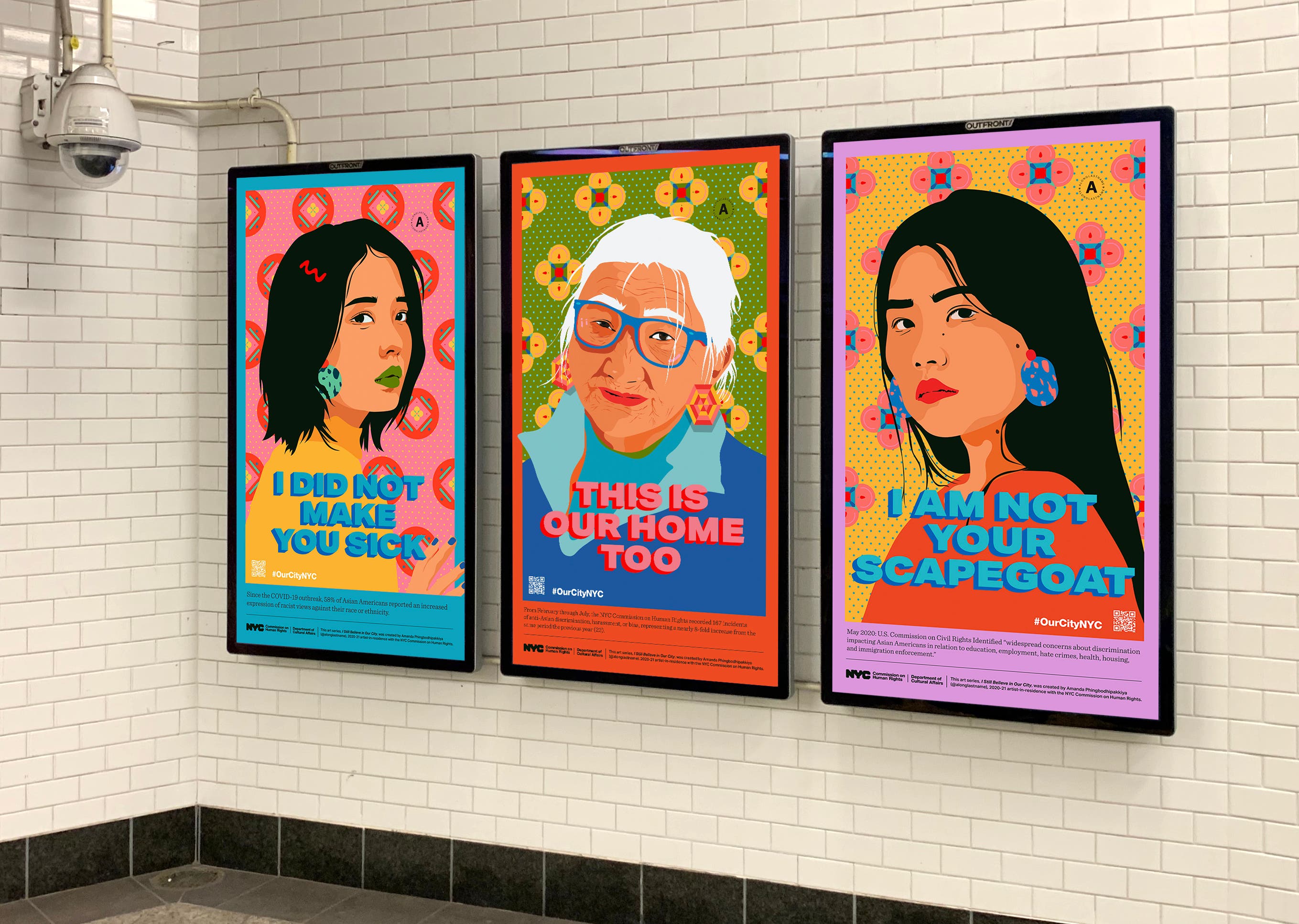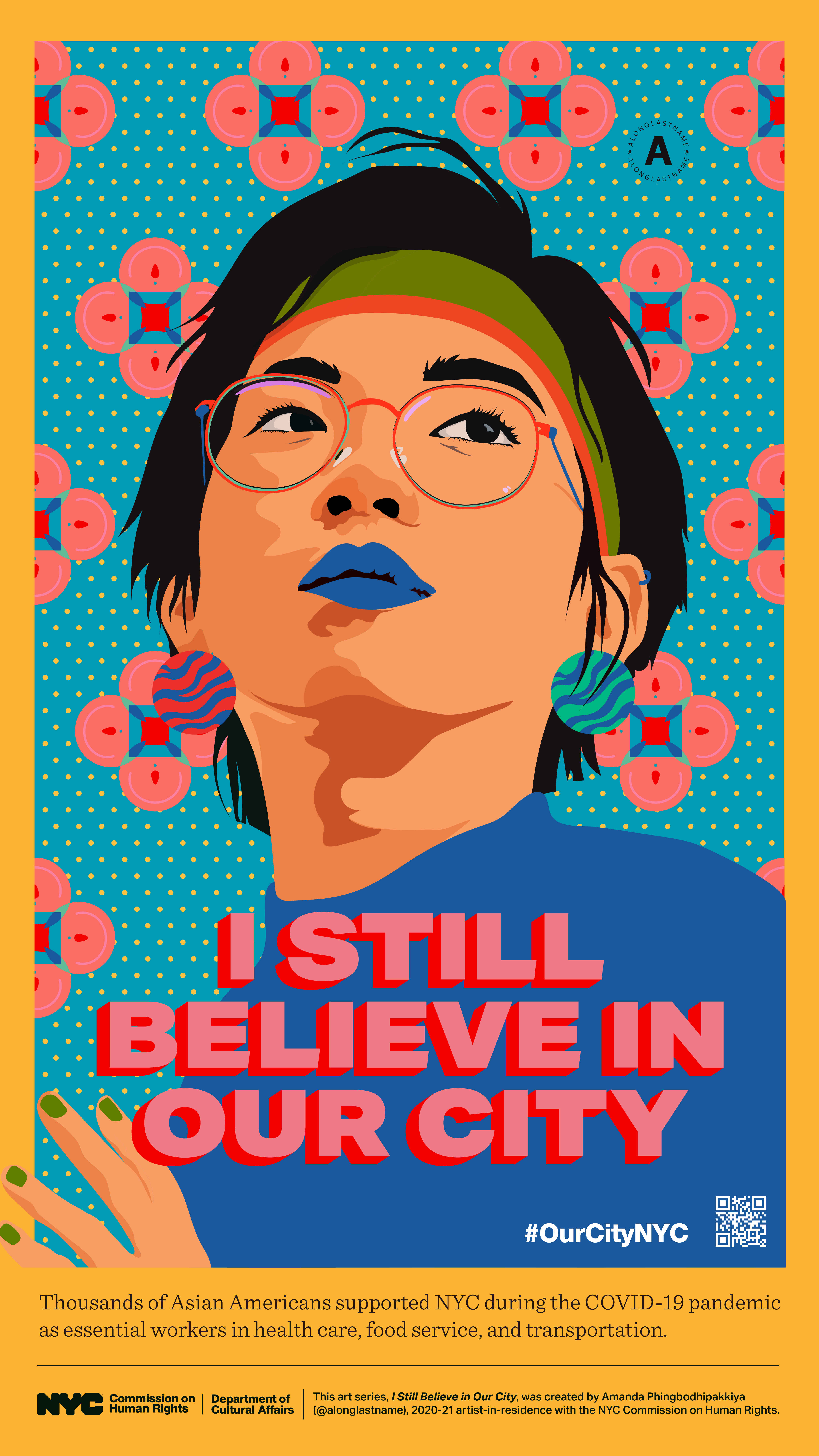 "Phingbodhipakkiya shows that despite what [Asian and Pacific Islander] New Yorkers have faced, they remain undeterred and steadfast members of the New York community," the commission said. "...More than an anti-hate campaign, the artist depicts her subjects as filled with courage, conviction and enduring community spirit."