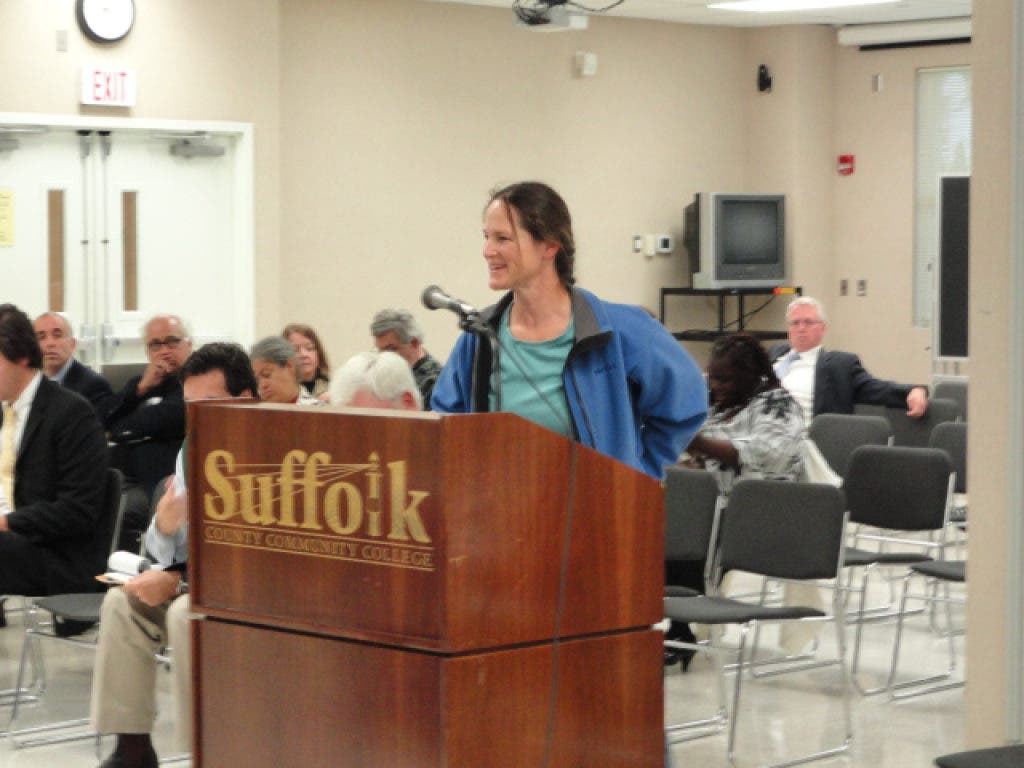 Karen Rivara, a shellfish farmer from Southold, spoke after McDonald and agreed that water quality was important to the local fishing industry. Rivara also described a popular ocean-leasing program that allows fishermen to "farm" shellfish on the bay floor. She suggested the council look into expanding that program to include hard clams and bay scallops.