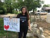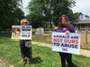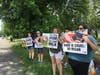 Lining Route 25 in Aquebogue outside Goodale Farms, Inc., in front of a pen of baby goats, protesters held signs that said, "Not Your Mom, Not Your Milk!", "All Mothers Deserve Love And Respect," and "Dairy Is Cruel, Go Vegan."