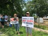AQUEBOGUE, NY — A pregnant woman led a protest Saturday outside a popular local dairy farm, aiming to spread a message about protecting the rights of calves that are separated from "their distraught mothers soon after birth so that the milk meant for them can be collected for humans to drink instead," she said.
