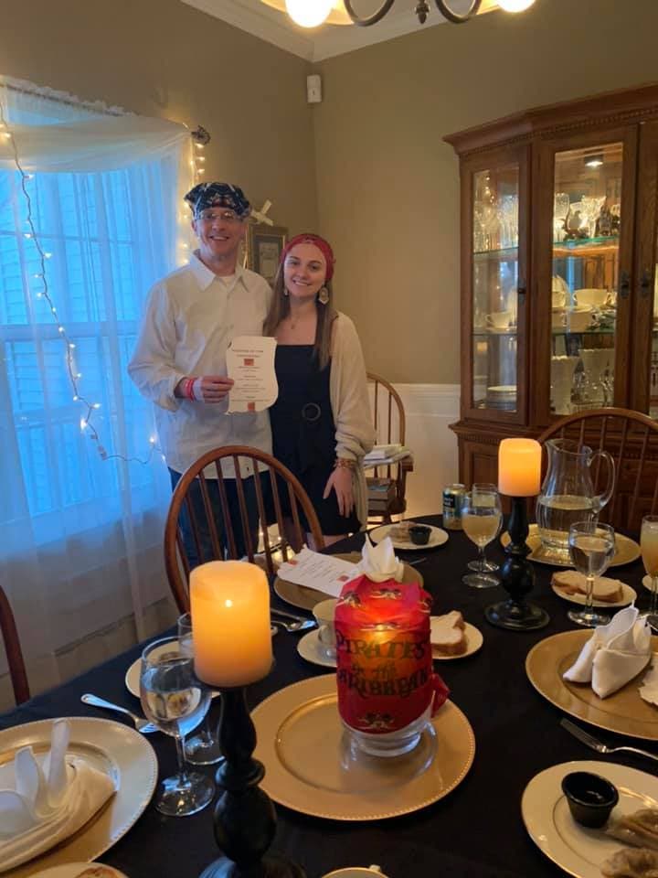 Their virtual cruise featured a Pirate Night, trips to Tortola — they included a great deal of information on each location for their friends and family who were following their cruise on Facebook; those families often dressed up in costume themselves and cooked up Disney-themed dinners, too.